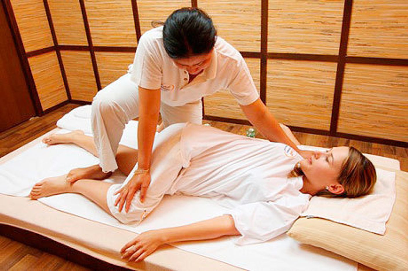 Этот вид массажа сочетает элементы йоги, иглоукалывания и мануальной терапии. Он включает в себя пассивные растяжки, нажатие на акупунктурные точки и манипуляции с суставами. Процедура помогает восстановить энергетический баланс организма, повысить гибкость, расслабить нервную систему, стимулировать кровообращение и устранить мышечные зажимы. Есть очень много техник тайского массажа: